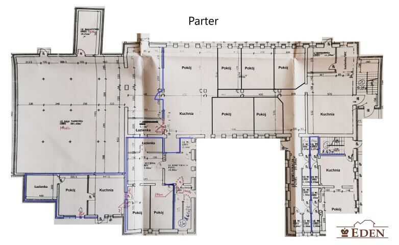 - wydzielone 5 lokali z wieloma pokojami, o różnej powierzchni które mogą służyć jako biura lub pełnić funkcję mieszkaniową, do nich przynależą kuchnie, łazienki, itp.